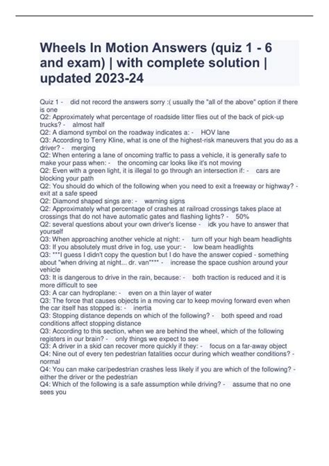 Free PDF Wheels In Motion Quiz 3 Answers pdf Doc Library Genesis